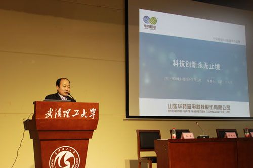 11月20日華特磁電董事長(zhǎng)、總裁王兆連先生,公司常務(wù)副總裁劉風(fēng)亮受邀赴武漢理工大學(xué)參加華特磁電獎(jiǎng)學(xué)金頒獎(jiǎng)儀式并分別作重要報(bào)告。校方高度重視,兩位院士及院校主要領(lǐng)導(dǎo)10余人熱情接待,并組織近四百名師生參加此次活動(dòng)。