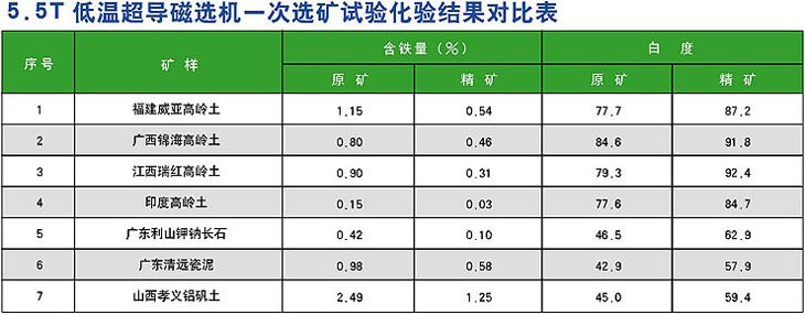 磁場力大,在5.5T背景場強下,分選腔內導磁介質表面產生非常大的磁力,能有效分出弱磁性雜質,大幅度提高非金屬礦品質,滿足高端產品要求。